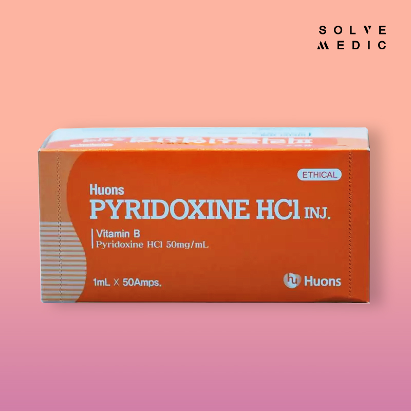 Pyridoxine HCl Injection is a sterile, nonpyrogenic injectable solution containing Pyridoxine Hydrochloride (50 mg/mL), a water-soluble form of vitamin B6, manufactured by Huons Co., Ltd., a leading South Korean pharmaceutical company. Primarily used to treat and prevent vitamin B6 deficiency in medical settings, such as inadequate dietary intake, drug-induced deficiencies (e.g., from isoniazid or oral contraceptives), or inborn metabolic errors, it is also indicated for conditions where oral administration is not feasible, such as in Total Parenteral Nutrition (TPN), anorexia, or postoperative states. In the aesthetic field, particularly in South Korea, Pyridoxine HCl Injection is used in intravenous (IV) beauty drips or intramuscular injections to support skin health, enhance tissue repair, and promote vitality, contributing to a radiant, youthful appearance. Its aesthetic applications leverage vitamin B6’s role in amino acid metabolism, neurotransmitter synthesis, hemoglobin production, and anti-inflammatory effects