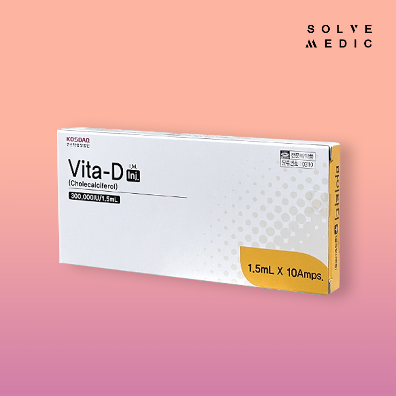 Vita D Inj. by Daehan New Pharm Co., Ltd. is a sterile, nonpyrogenic injectable solution containing Cholecalciferol (Vitamin D3), likely at a concentration of 200,000 IU/1 mL, designed to treat and prevent vitamin D deficiency in patients with insufficient dietary intake, limited sun exposure, or conditions impairing vitamin D absorption (e.g., malabsorption syndromes). In the aesthetic field, particularly in South Korea, Vita D Inj. is used in intravenous (IV) beauty drips or intramuscular (IM) injections to support skin health, enhance tissue repair, and promote overall vitality, which are marketed as contributing to a radiant, youthful complexion.